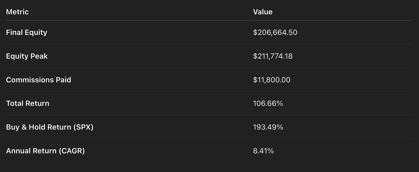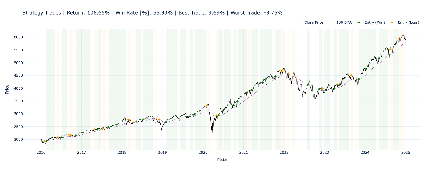 Inside the full premium PDF đ, Iâve included a premium strategyâone that I actually trade. It goes deeper on execution, adapts better across assets, and delivers stronger performance, backtested on S&P: